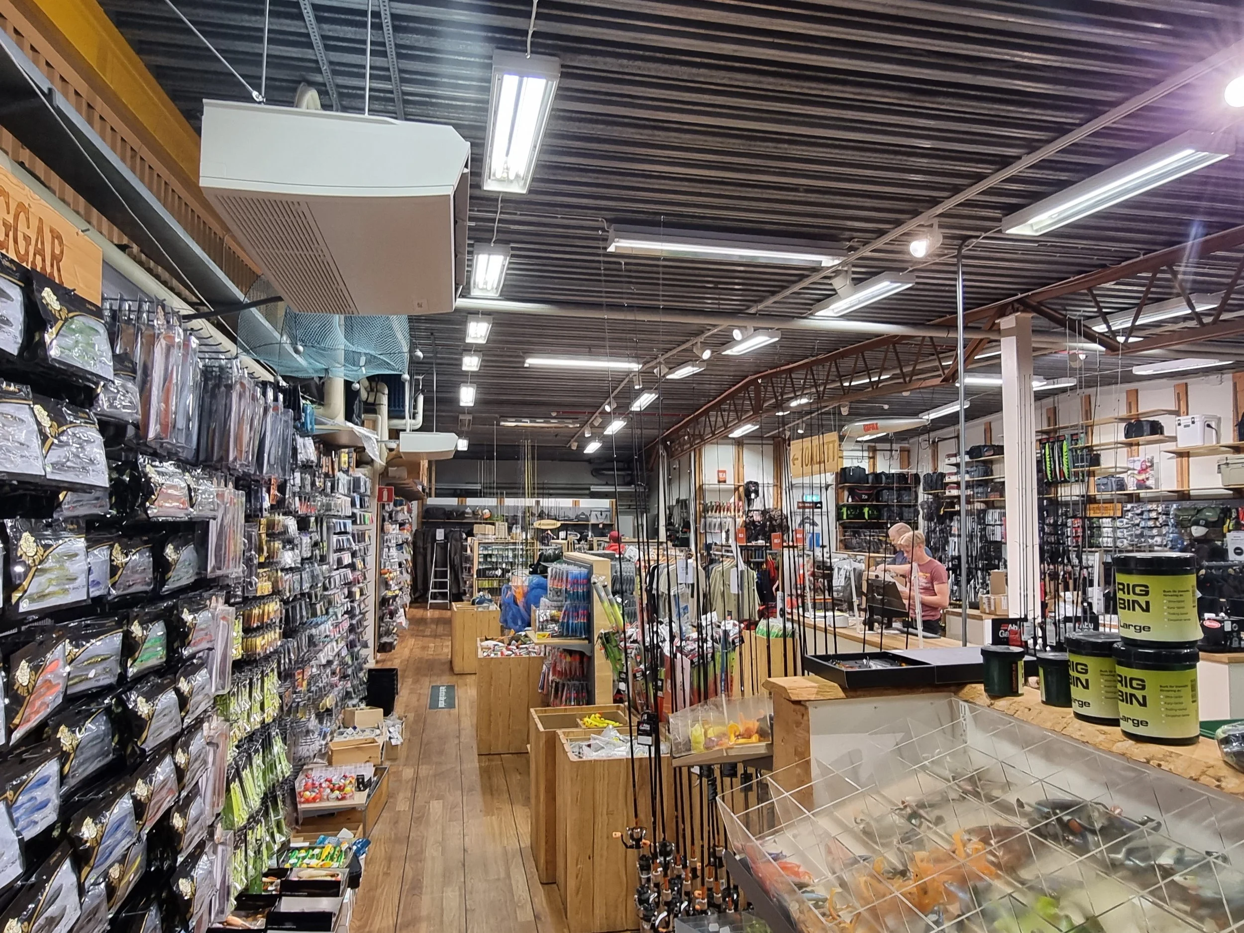 Næste dag vågnede vi op til en smuk dag med en fantastisk udsigt – og en masse myg. Vi spiste morgenmad og satte kurs mod Strömsund og Vildmarksvägen. Der er både tankstationer og indkøbsmuligheder i Strömsund, og vi måtte forbi "Kläder, sko og fritid" for at købe en kniv til Mikas, som han virkelig gerne ville have.