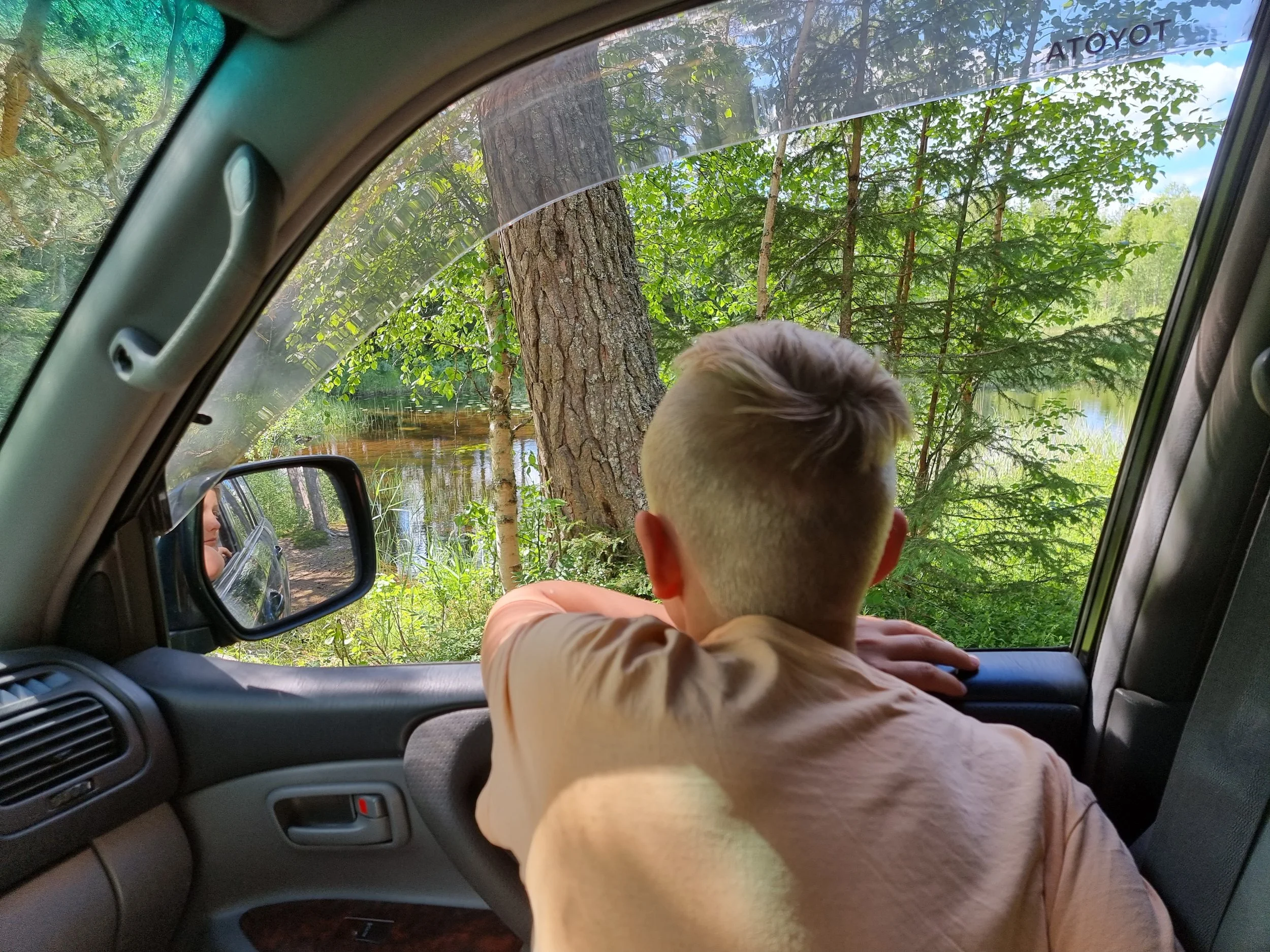 Vi forsøgte at finde søer inde i skovene og derefter finde nogle gamle skovstier, der kunne føre os derhen. Flere gange prøvede vi at køre ind, men ofte kunne vi ikke komme så tæt på vandet, som vi ønskede, så vi måtte bare vende om og prøve igen. Dette gjorde vi mange af dagene, og nedenfor kan du se nogle billeder fra Vildmarksvägen: